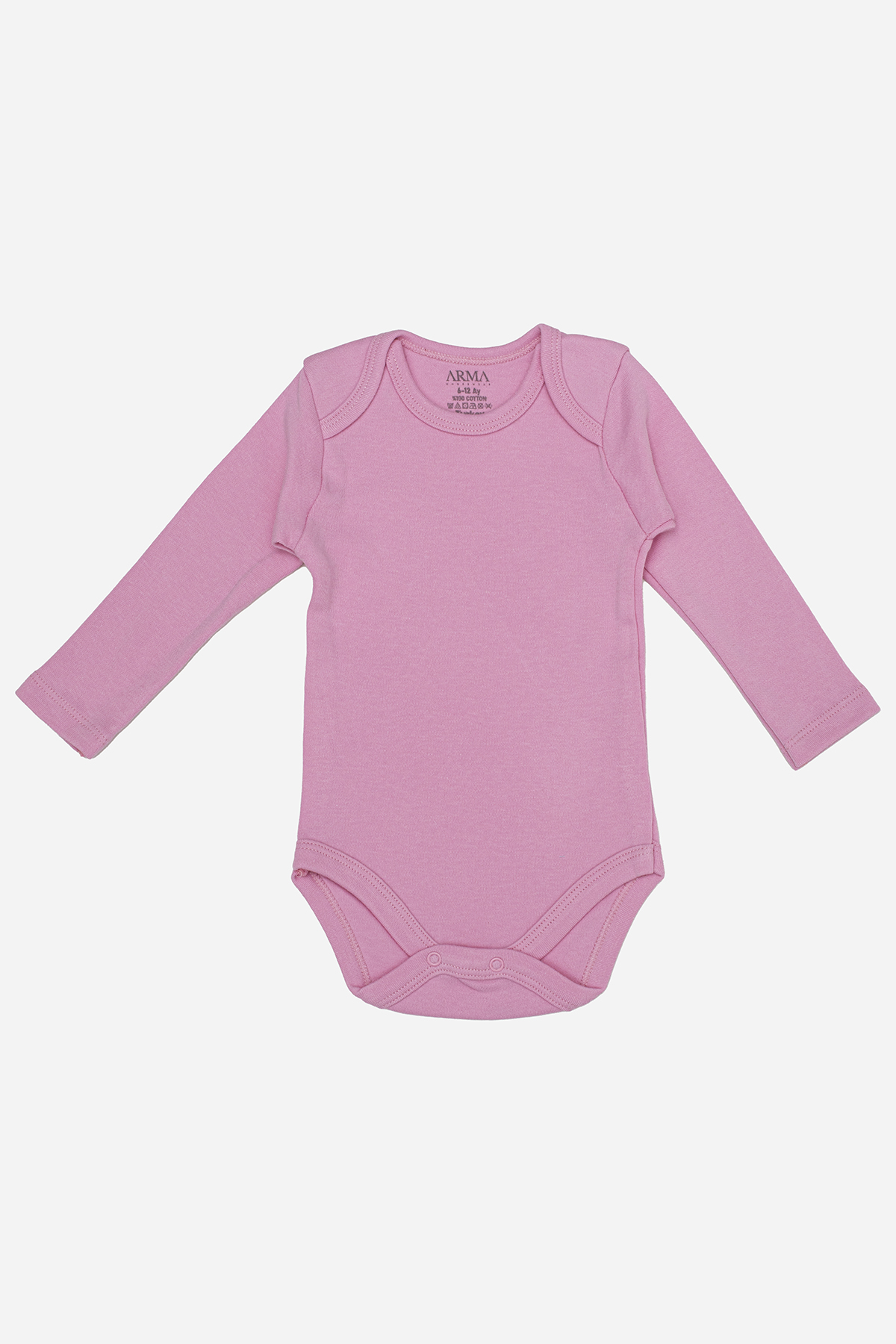 %100 Organik Pamuk Pembe Uzun Kollu Bebek Çıtçıtlı Zıbın Body