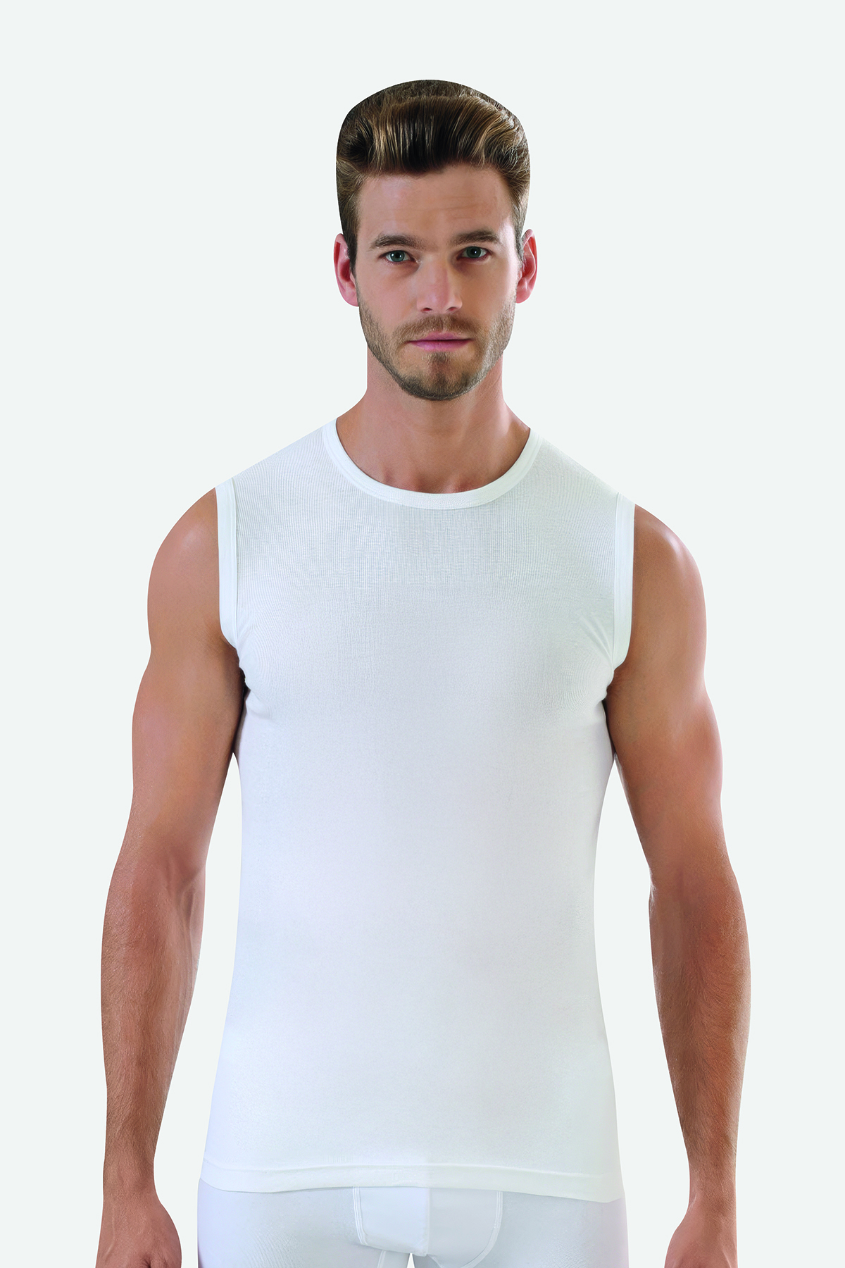 Beyaz Kolsuz Erkek Atlet Yuvarlak Yaka Sıfır Kol Tişört %100 Pamuklu