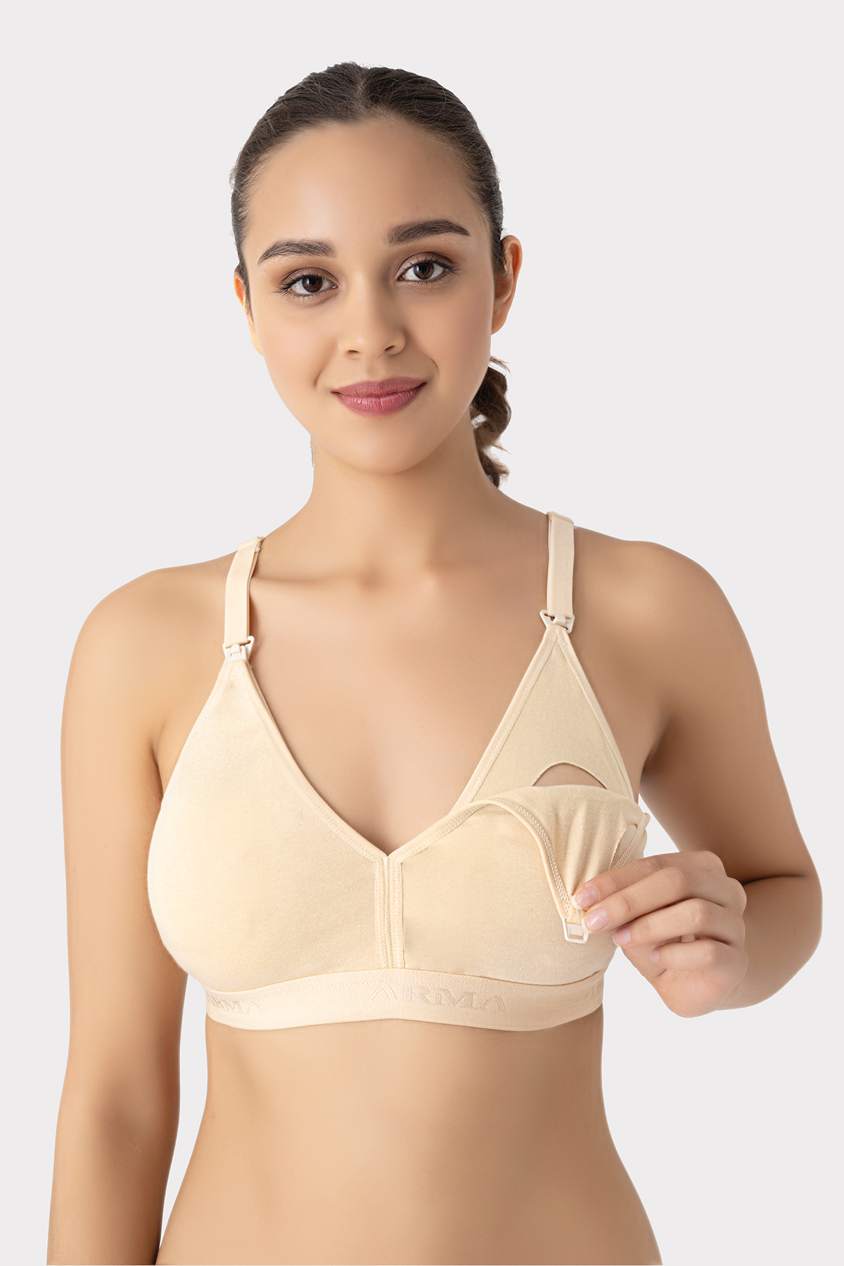Çıkarılabilir Pedli Emzirme Sütyeni Ten Pamuklu Göğüs Ucu Belli Etmez