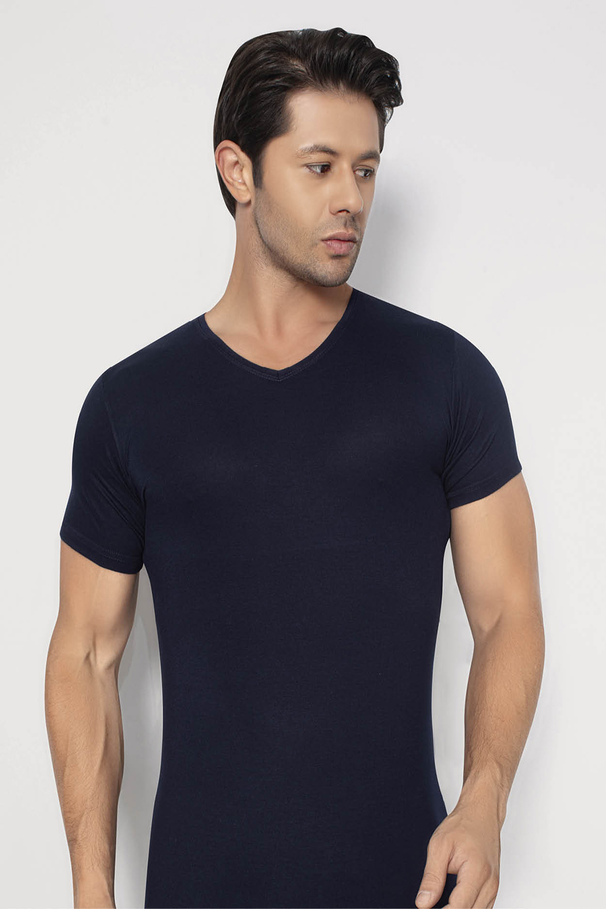 Erkek Bambu Tişört V Yaka Kısa Kol Lacivert
