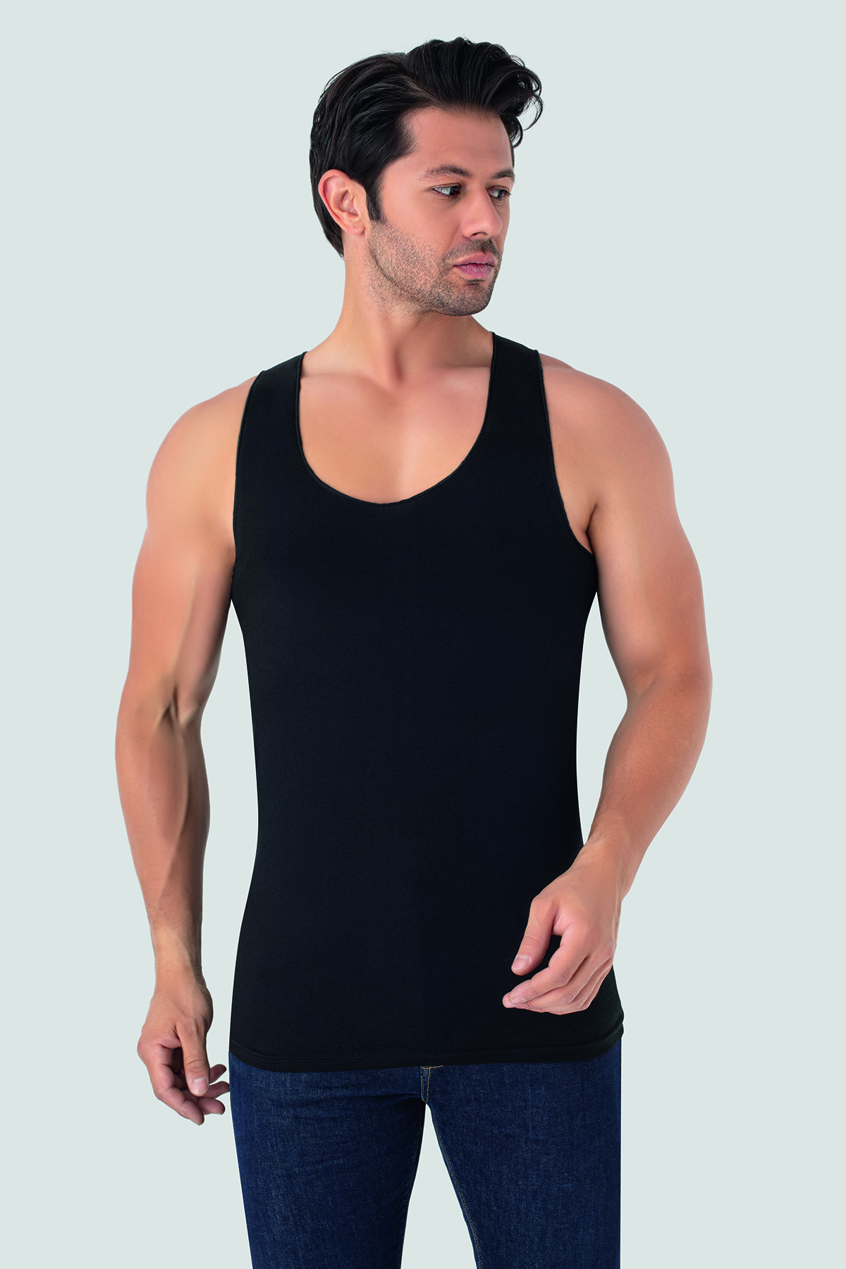 Erkek Görünmez Atlet Hayalet Atlet Siyah %100 Pamuklu