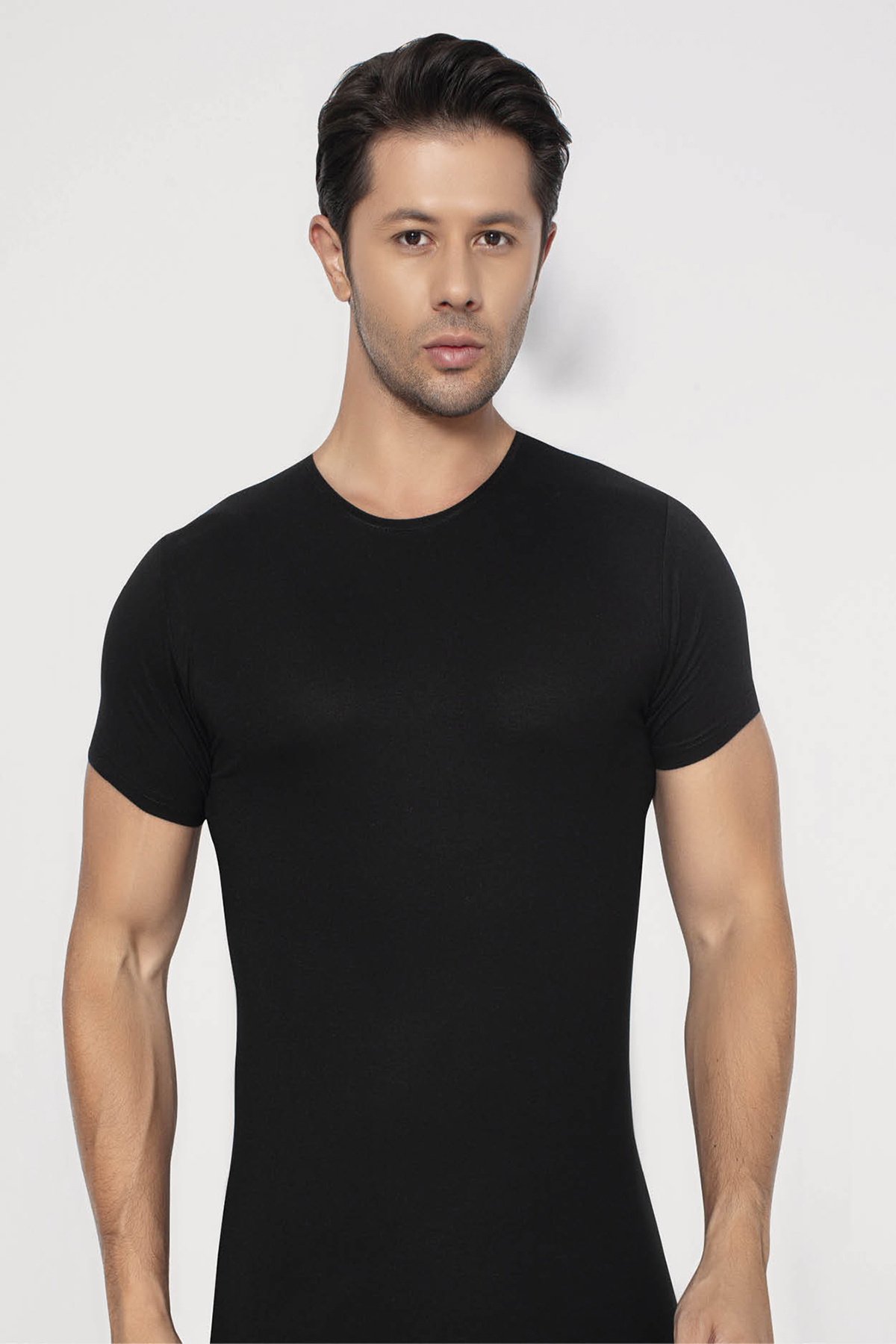 Erkek Slim Fit Dar Kesim Pamuklu Yumuşak Dokulu Siyah Bisiklet Yaka Basic Tişört