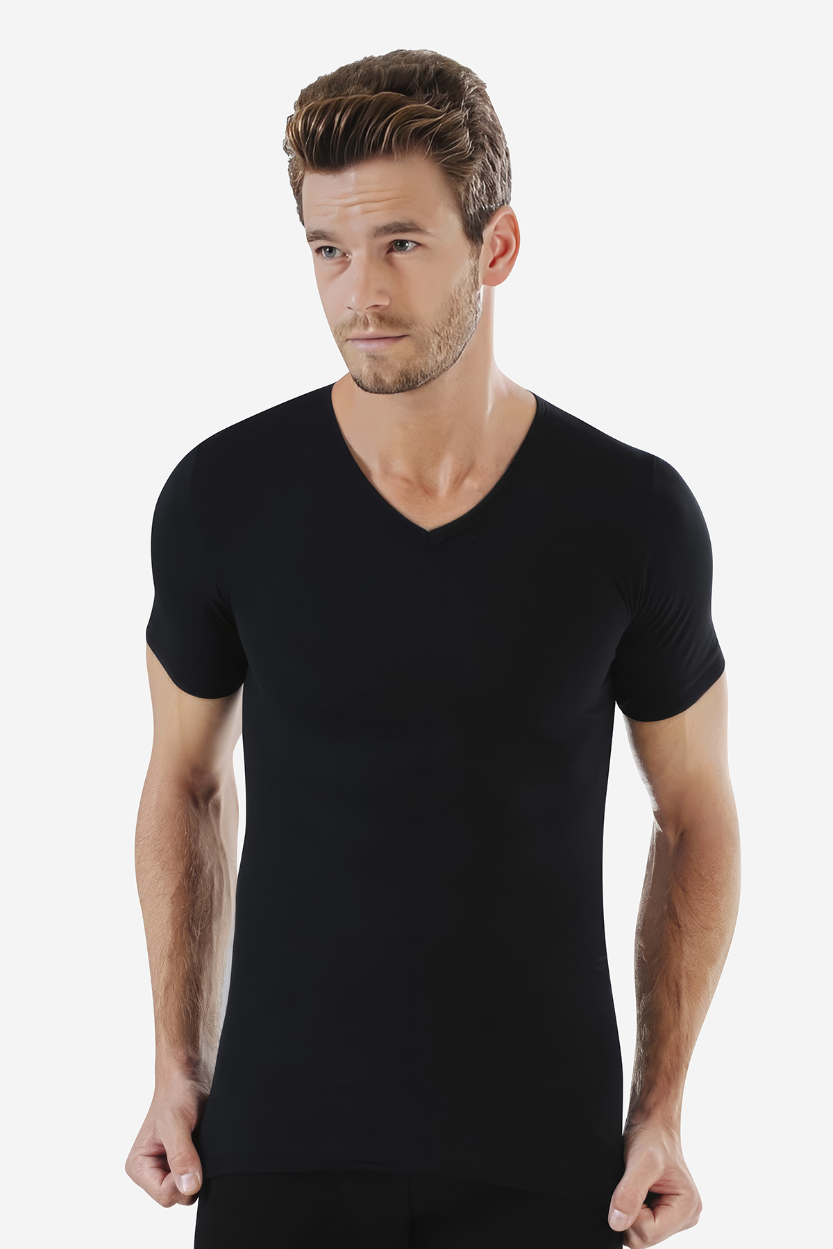 Erkek V Yaka T-Shirt Penye Süprem (%100 Pamuk)