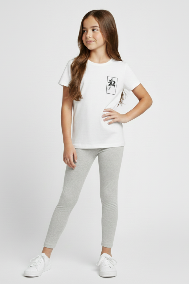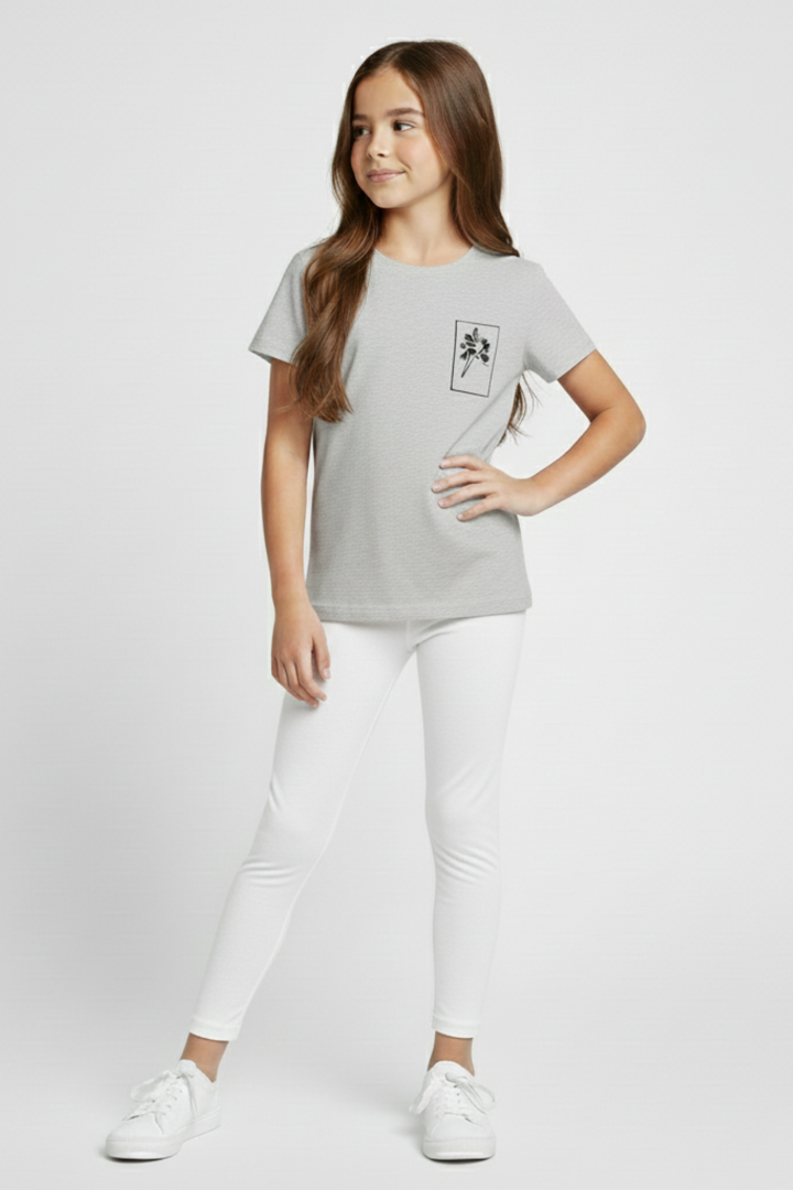 Kız Çocuk Gri Pamuklu Likralı Düz Uzun Tayt