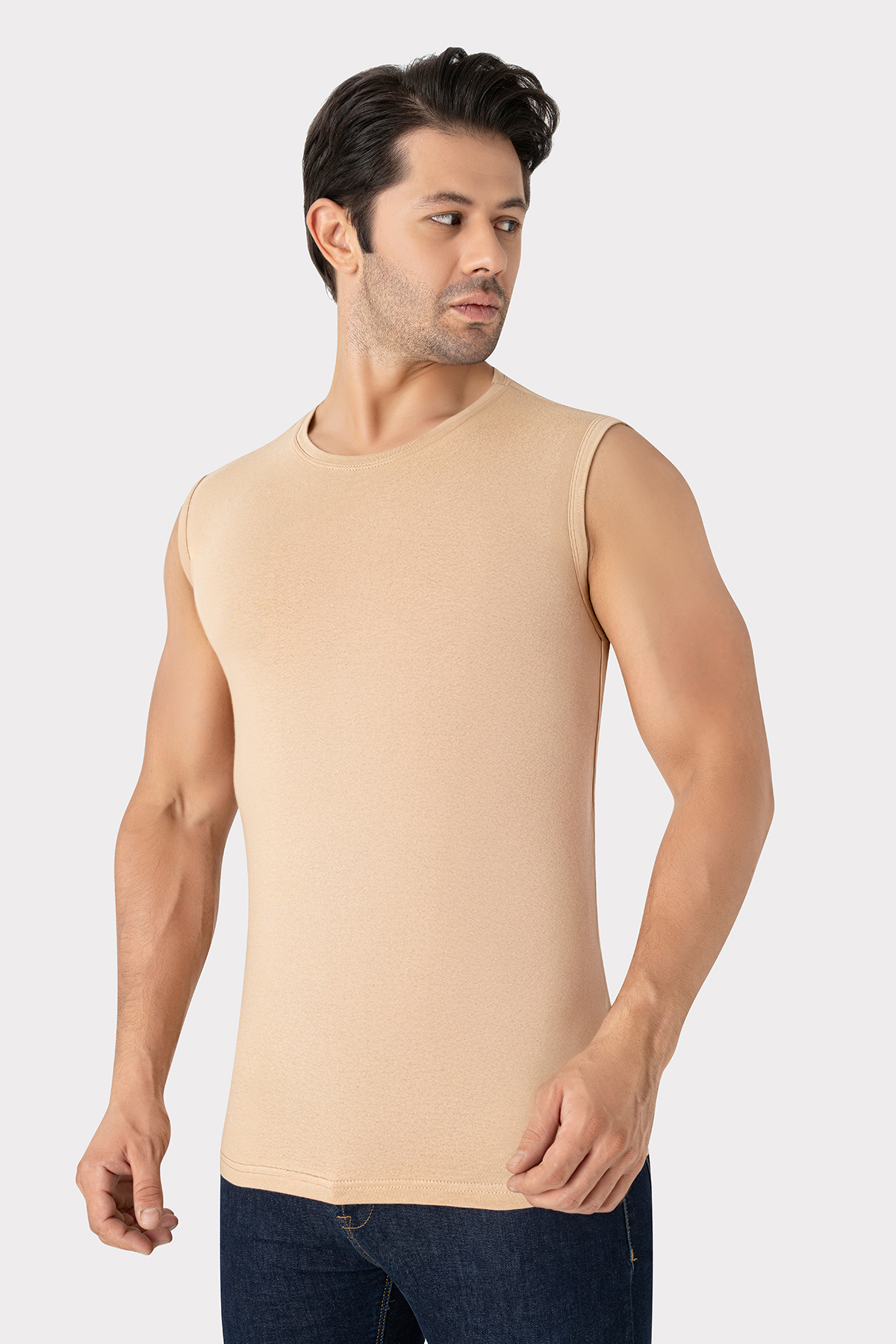Görünmez Atlet Erkek Ten Rengi Bisiklet Yaka Kolsuz Tişört Pamuklu Likralı Yumuşak Esnek Kumaş