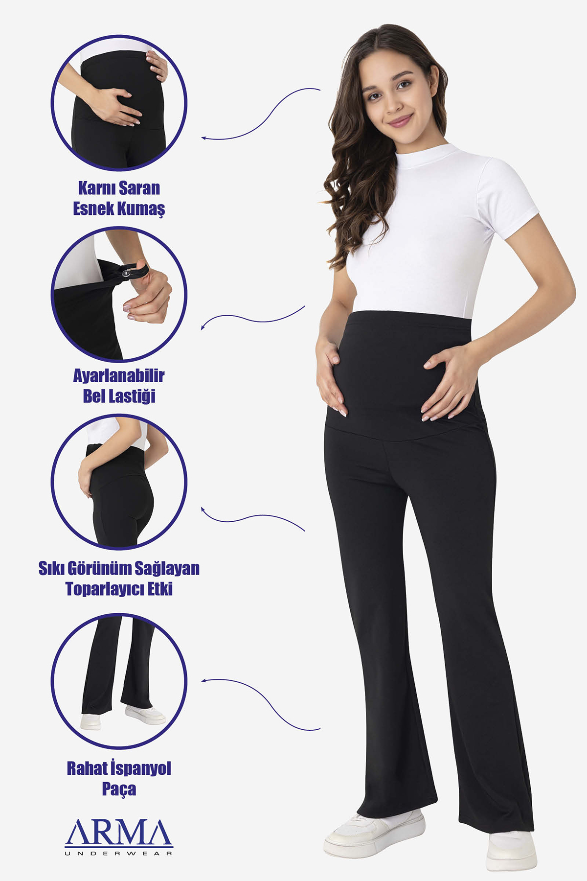 İspanyol Paça Yüksek Bel Esnek Toparlayıcı Hamile Tayt Siyah