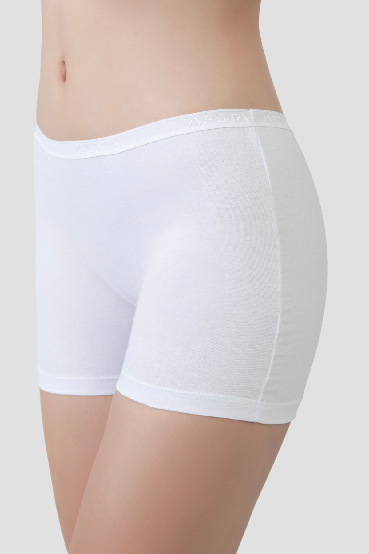 Kadın Beyaz Boxer Şort Pamuklu Likralı