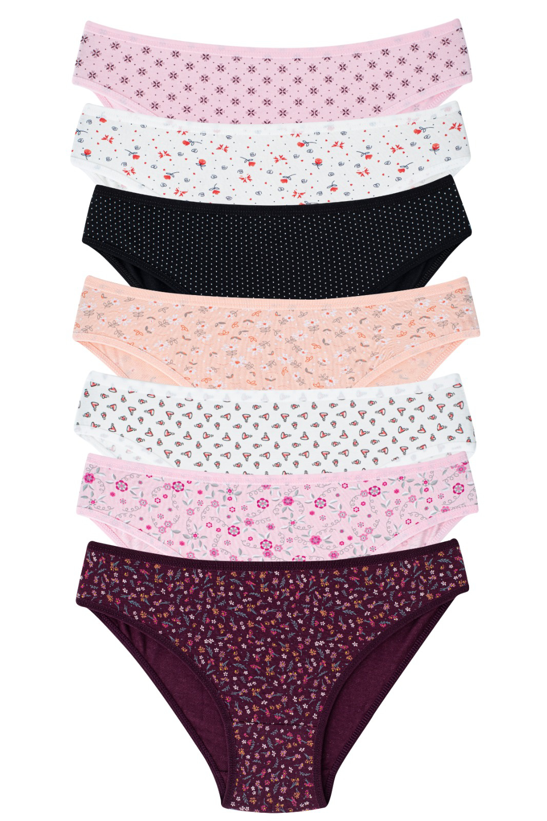 Kadın Desenli Karışık Renkli Külot Slip 7'li Paket Pamuklu Likralı