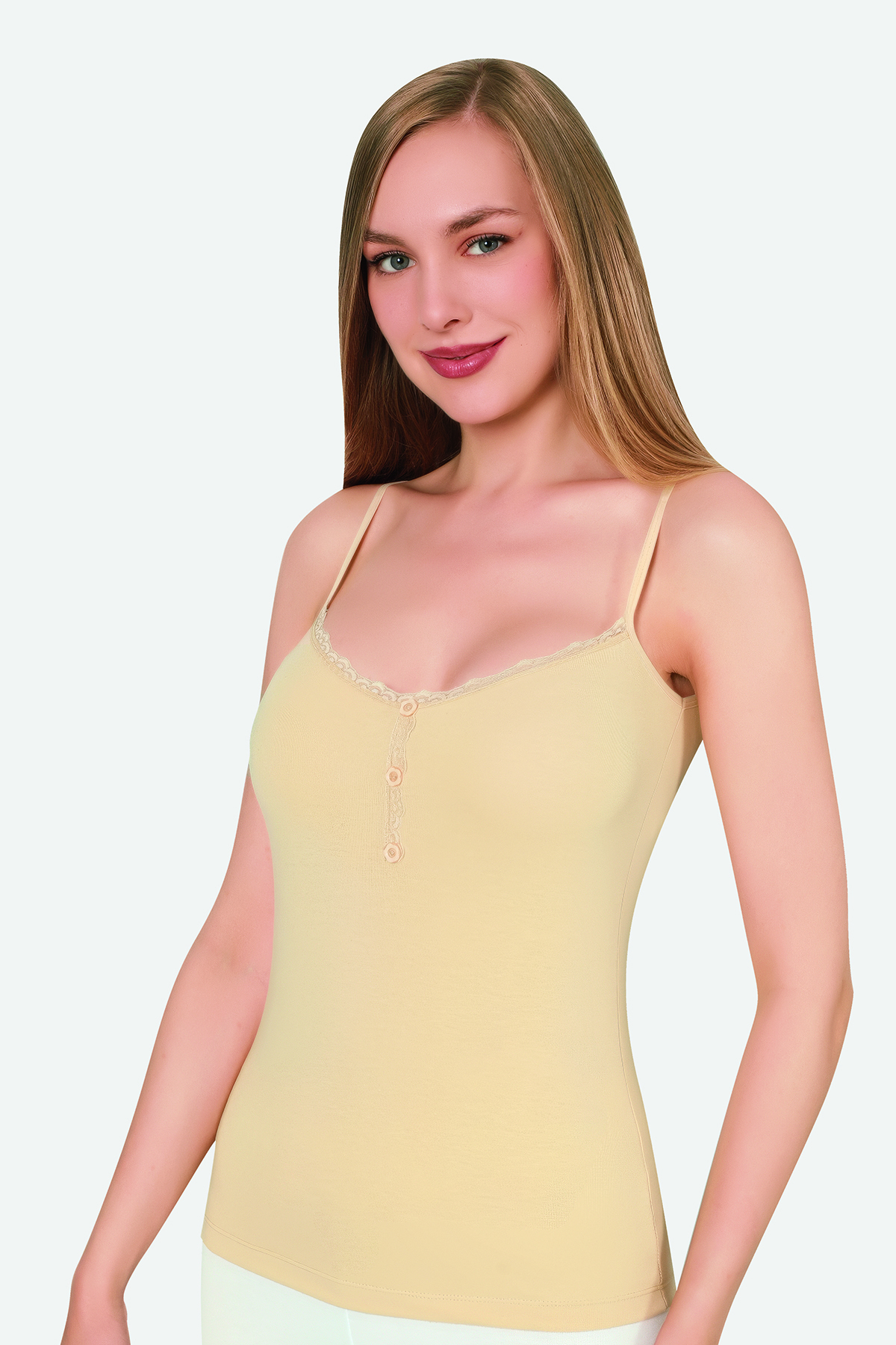 Kadın Düğmeli Atlet İp Askı Likralı