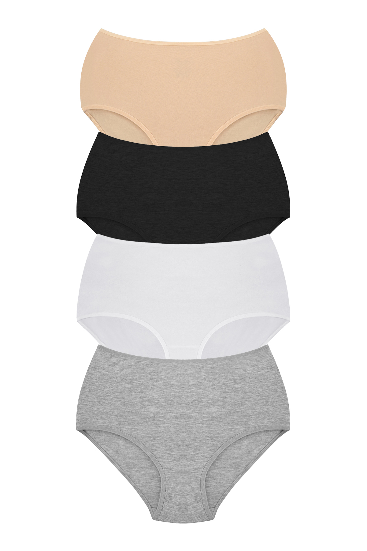 Kadın Külot Likralı Yüksel Bel 4'lü Paket (%100 Pamuk)