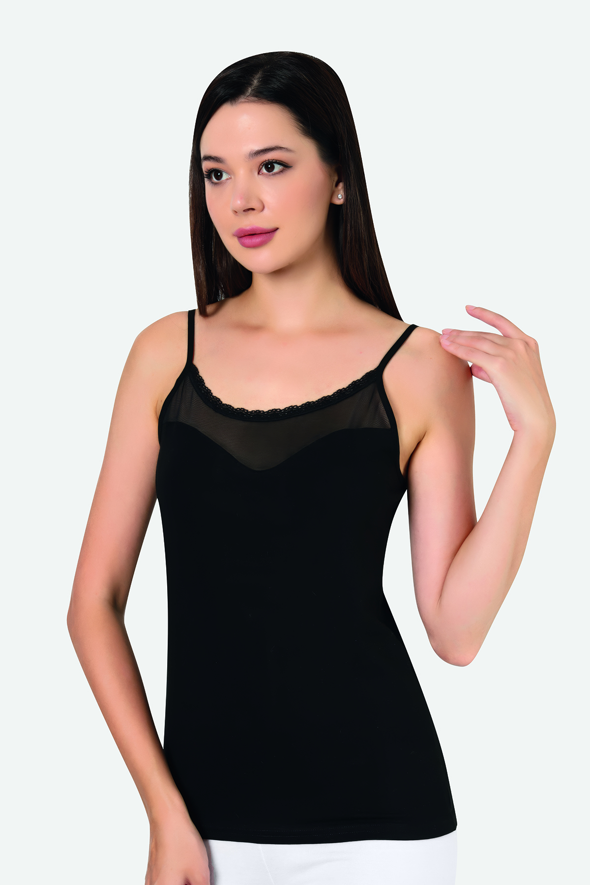 Kadın Likralı Tüllü İp Askı Atlet