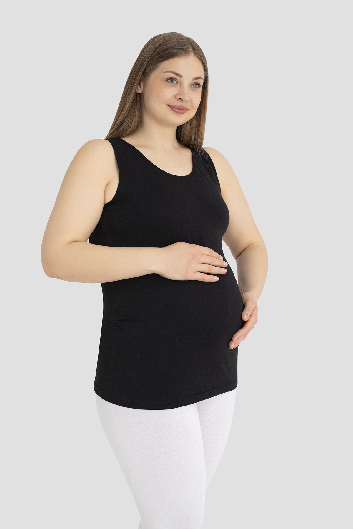 Kadın Pamuklu Hamile Atleti Siyah Kalın Askılı