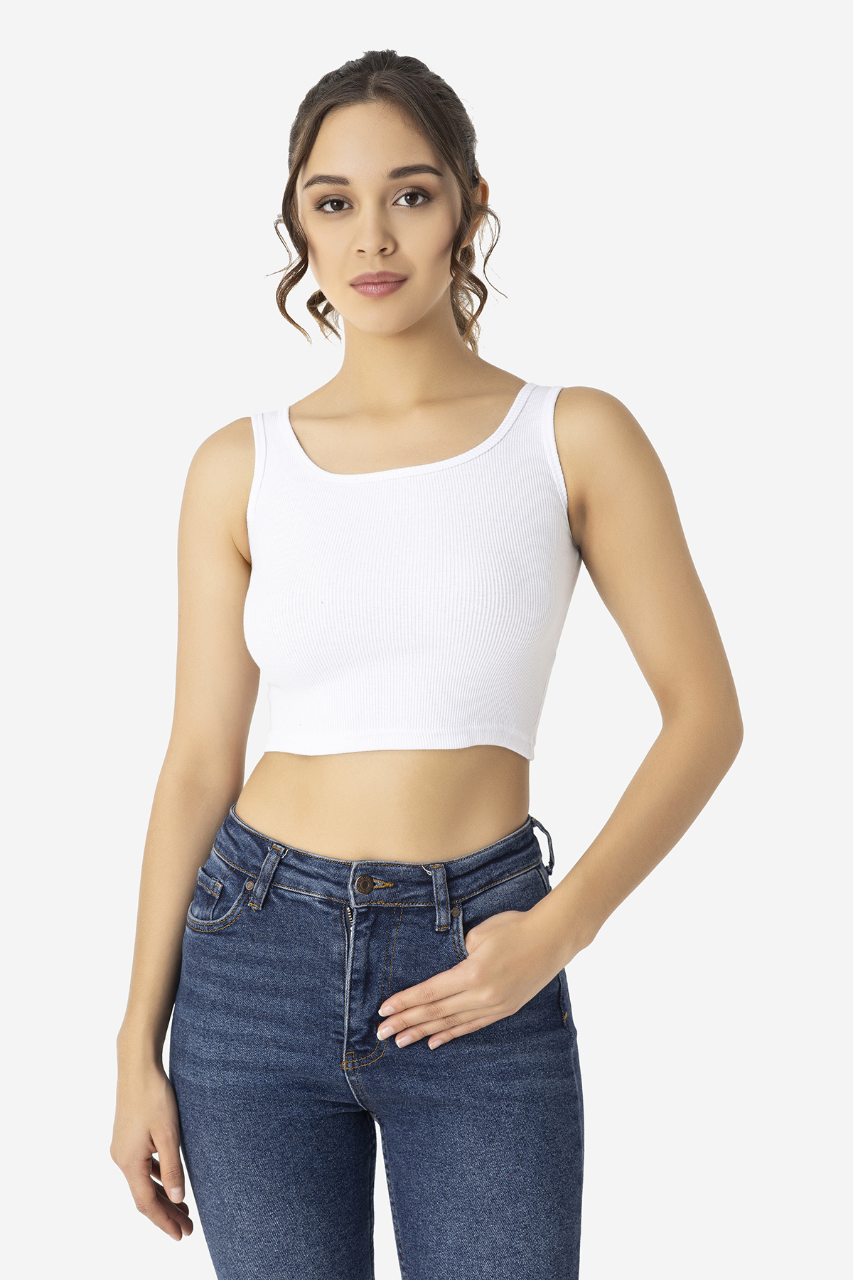 Kadın Pamuklu Kaşkorse Bisiklet Yaka Kalın Askılı Crop Beyaz
