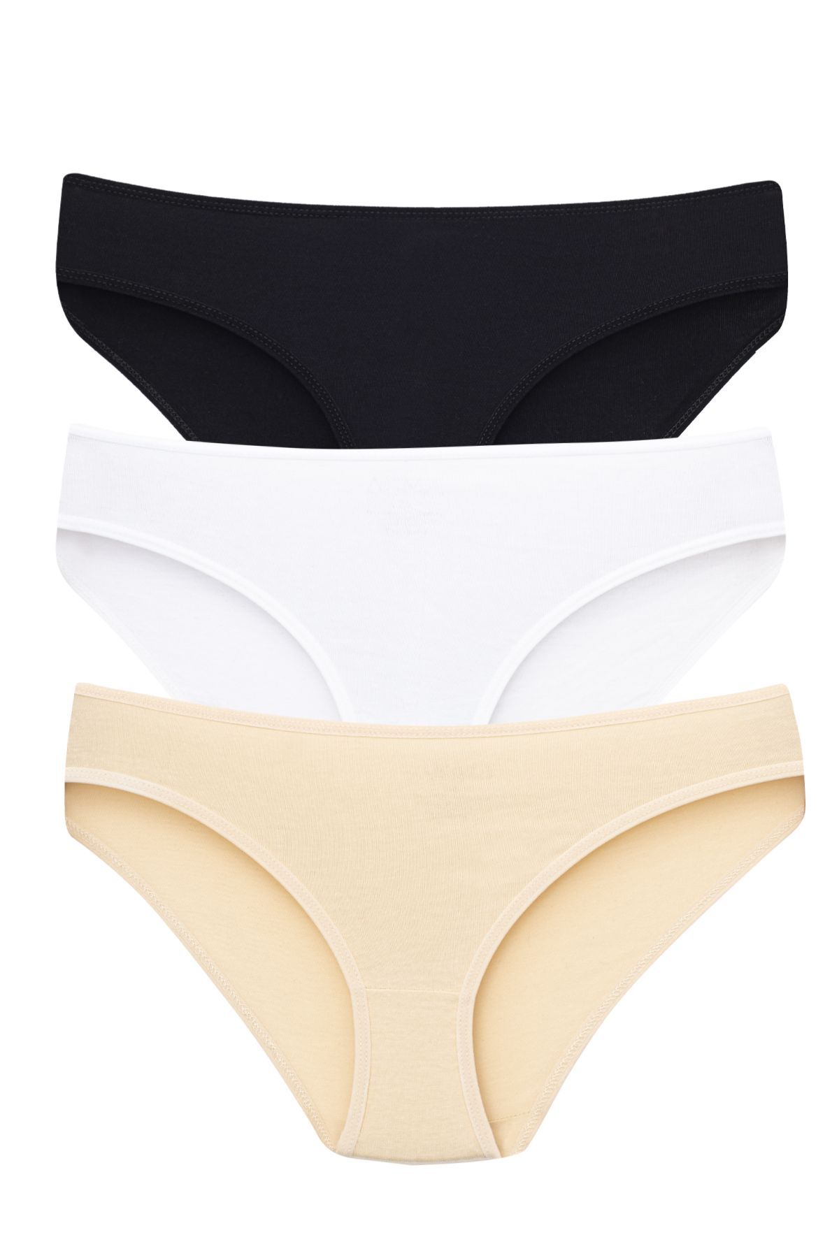Kadın Pamuklu Slip Külot 3'lü Paket Renkli Düz Nefes Alabilir Kumaş