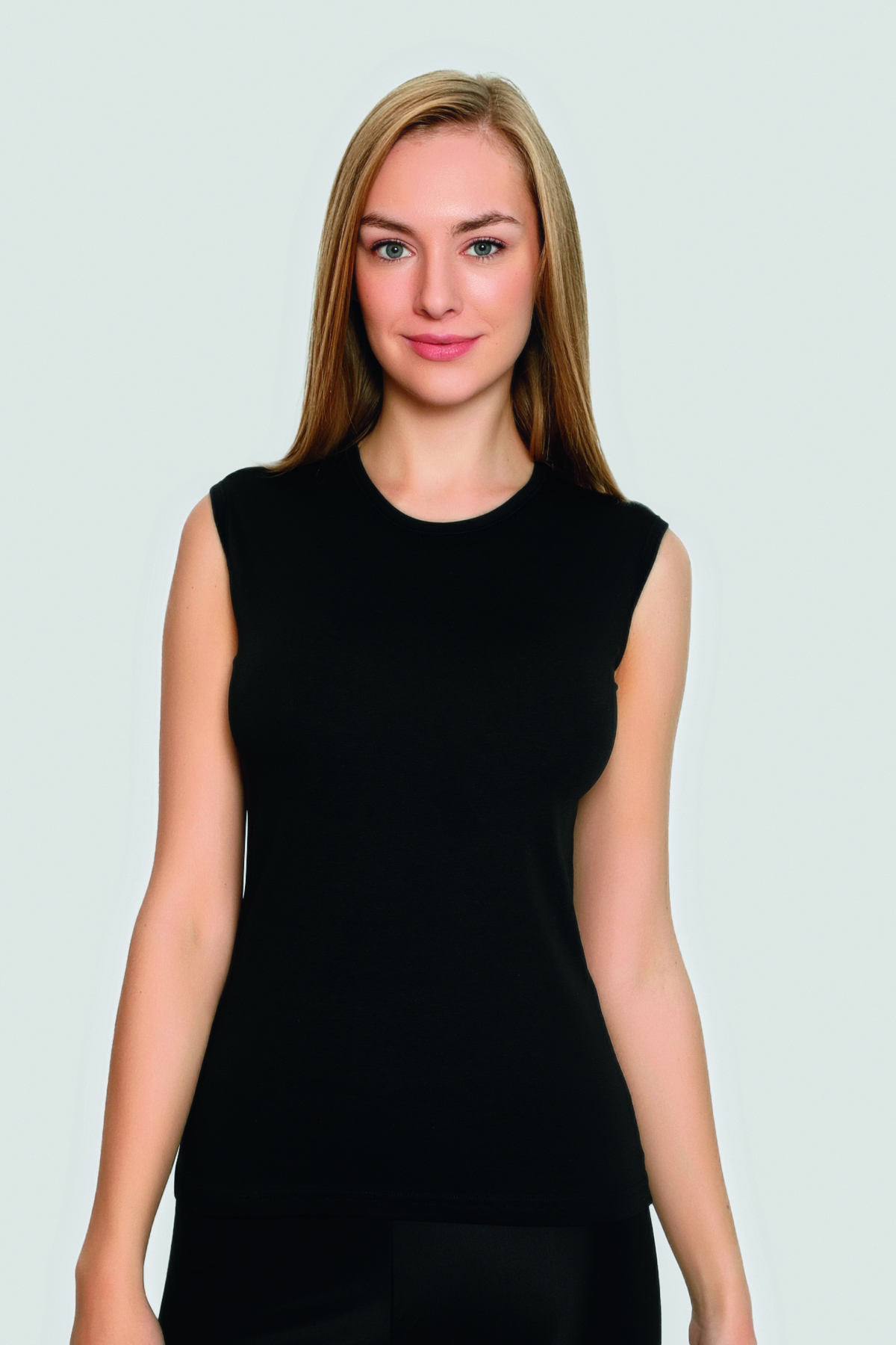 Kadın Siyah Sıfır Kollu Sıfır Yaka Atlet Kolsuz Tişört Likralı