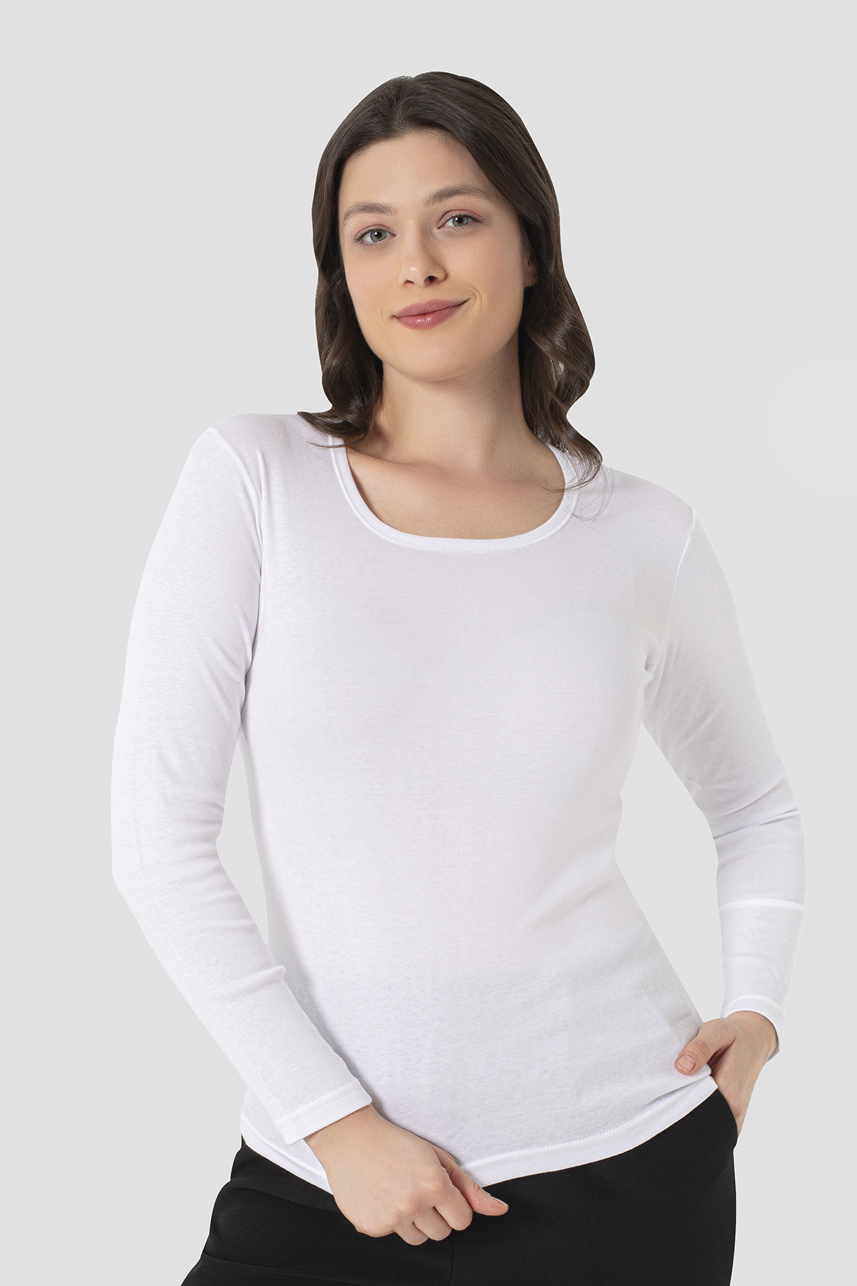 Kadın Uzun Kol Badi Ribana Yuvarlak Yaka (%100 Pamuk)