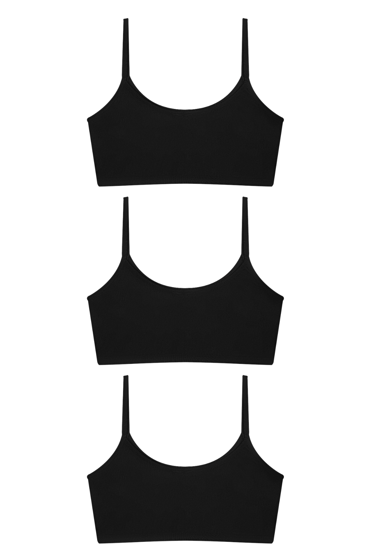 Kız Çocuk İp Askı Siyah Yarım Atlet Büstiyer 3'lü Paket