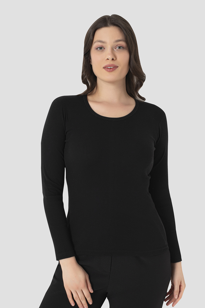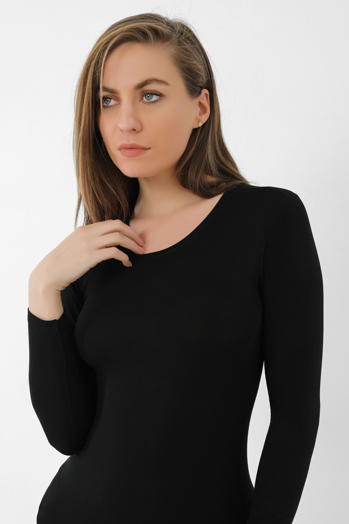 Kadın Bambu Uzun Kol Badi Bisiklet Yaka