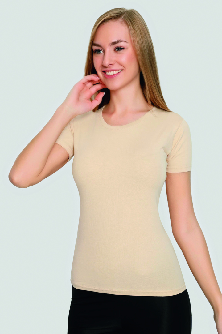 Kadın Ten Bambu Tişört Kısa Kol